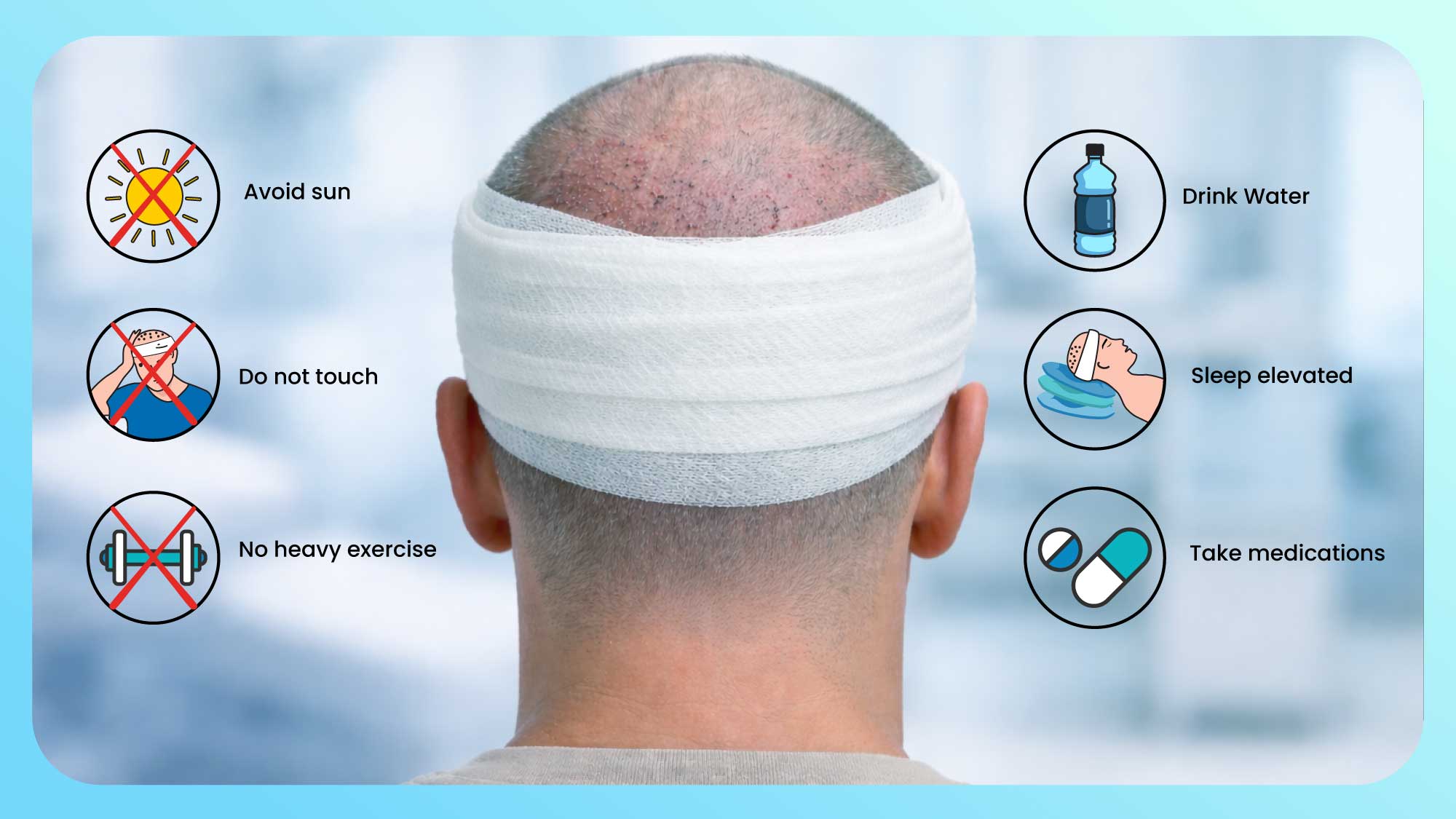 • الحماية من الشمس: احمِ فروة رأسك من حروق الشمس في الأشهر الستة الأولى. الأشعة فوق البنفسجية يمكن أن تضر الجلد والبصيلات.